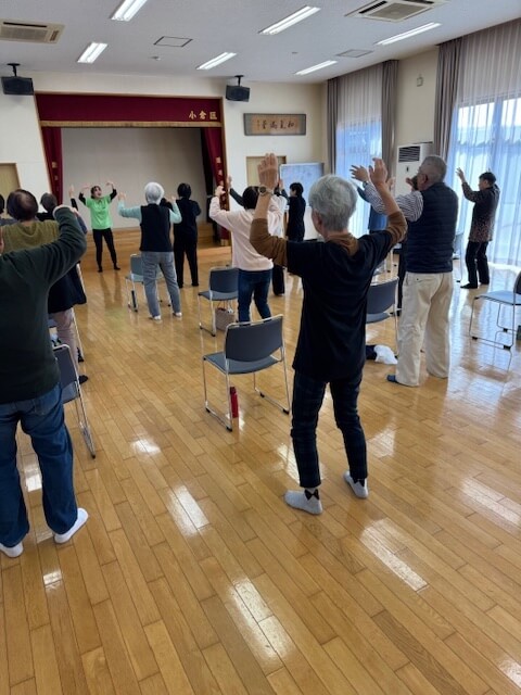 今は、常滑市内で4ヶ所で週に5回、半田市内で1ヶ所1回開催しています。各教室とも初めは数人からスタートして1年くらいで10人以上になります。月曜日のイオンモール常滑ではイオンホールにて開催するときは30名を超えてきています。本当にありがたいことです。また、熱心な高齢者が多いことに驚かされています。週一回以上参加される人は70%を超えています。本当にすごいことだと感じます。いつまでも元気に過ごして欲しいです。
