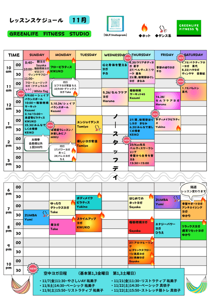 11月 スタジオレッスンスケジュール