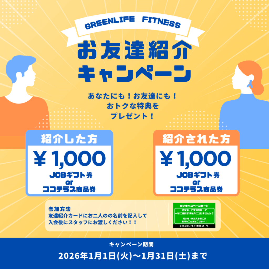 この1月もとっっってもお得な入会キャンペーンに加えて紹介キャンペーンも実施しております!!